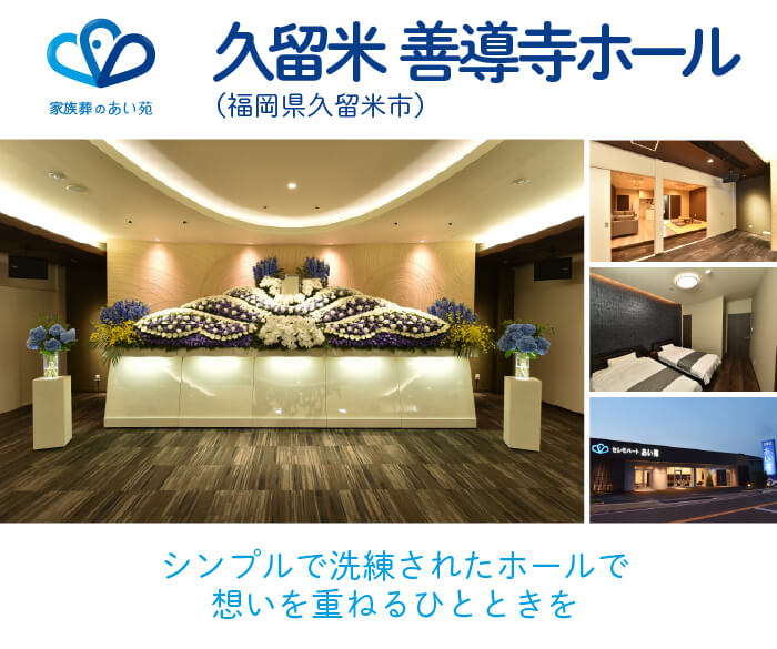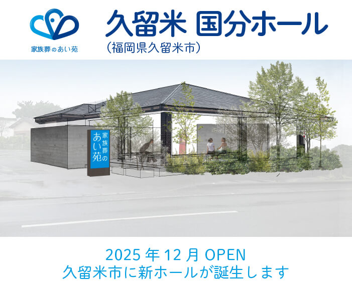 久留米市国分町に位置し、ご家族が落ち着いてお見送りできる空間をご用意しています。