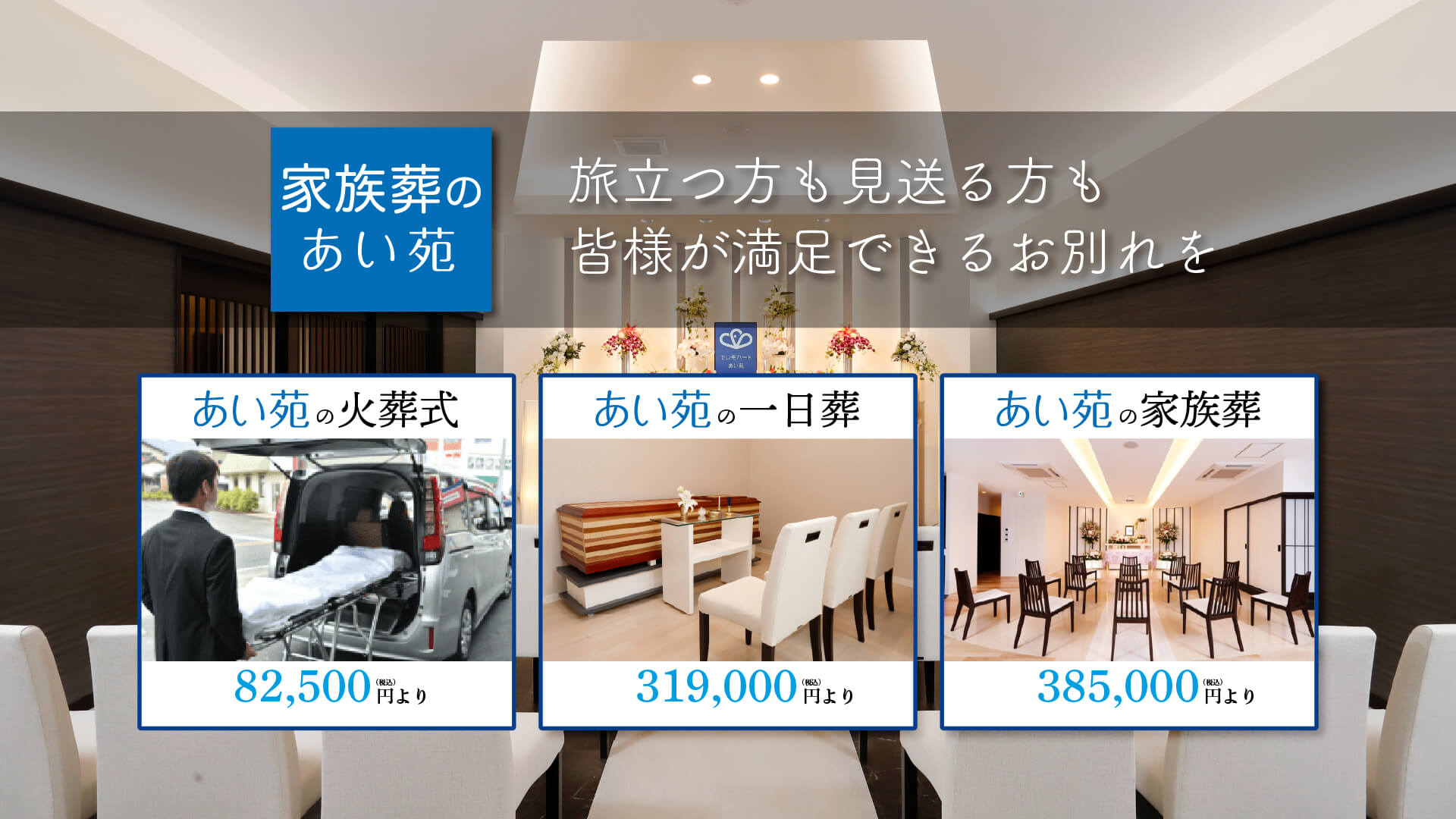 大切な故人様のご遺志や、ご家族様のご要望をしっかりと受けとめ、”その人らしい”セレモニーを、真心を込めてあい苑スタッフがお手伝いいたします。