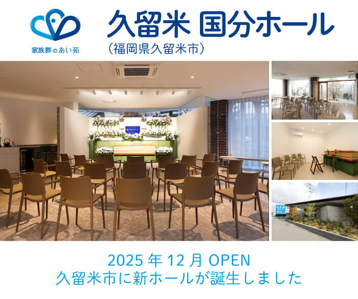 久留米 国分ホールは、「ちょうどいい」家族葬をコンセプトにした小~中規模の家族葬専用ホールです。